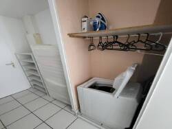Un couloir aménagé avec un dressing et un lave-linge vous conduit à l'espace séjour-chambre.