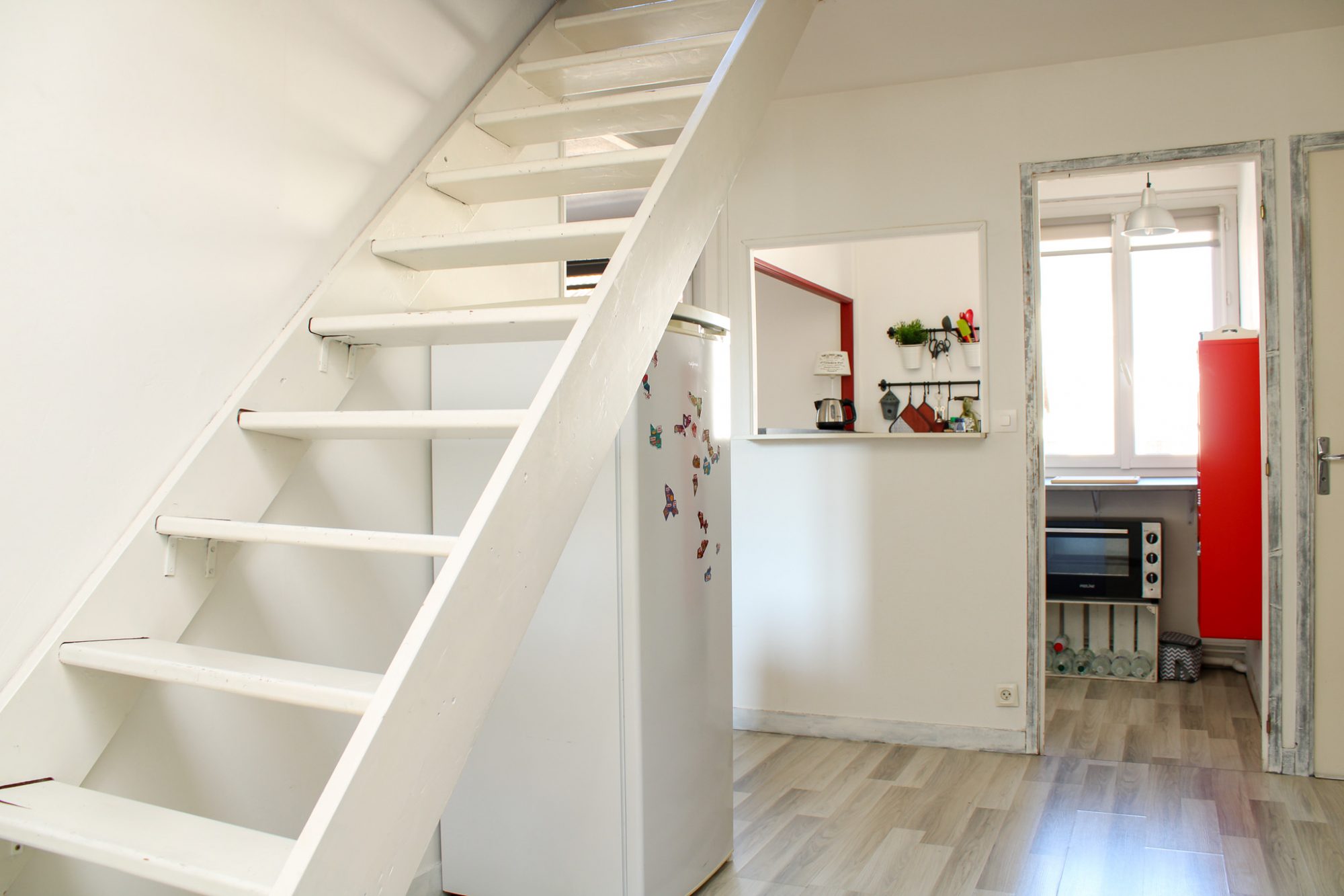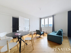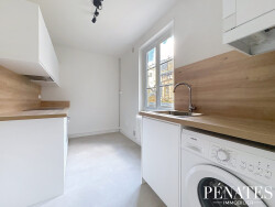 L'appartement dispose d'un beau séjour de 20 m² donnant sur la cuisine entièrement aménagée et équipée, proposant tout l'électroménager y compris machine à laver. La salle de douche propose une vaste cabine, une vasque, un sèche serviettes et des rangements, WC. Chambre avec literie neuve, rangements sur mesure, bureau.