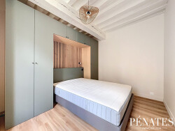 L'appartement dispose d'un beau séjour de 20 m² donnant sur la cuisine entièrement aménagée et équipée, proposant tout l'électroménager y compris machine à laver. La salle de douche propose une vaste cabine, une vasque, un sèche serviettes et des rangements, WC. Chambre avec literie neuve, rangements sur mesure, bureau.
