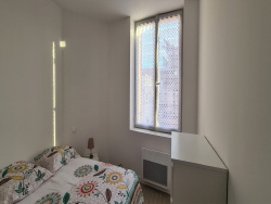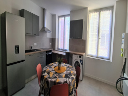 Dans le centre ville de Marmande, proche de toutes commodités, ce bel appartement entièrement rénové de type T3 situé au 1er étage d'un immeuble se compose d'une entrée sur pièce de vie avec cuisine équipée ( plaque, four, hotte), 2 chambres dont 1 avec placard, une salle d'eau et un WC séparé.