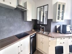 Le logement se compose au rez-de-chaussée : Une cuisine aménagée (meubles hauts et bas, hotte) Un séjour avec baies vitrées donnant sur le balcon, WC séparé avec lavabo De nombreux rangements À l'étage : 2 chambres avec placard muraux Une salle de bains avec douche à l'italienne, meuble vasque un second WC Un dégagement avec placard mural Informations techniques : Chauffage : électrique par radiateur Eau chaude : par cumulus électrique Occultations extérieures : volets roulants électriques en PVC Menuiseries : PVC double vitrage