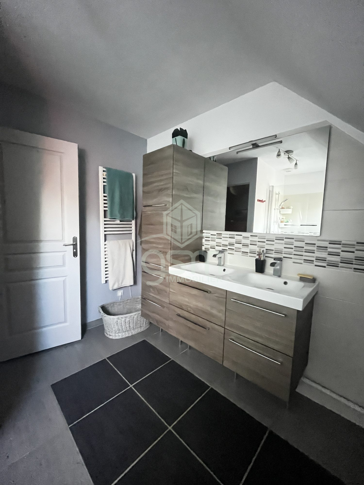 Jardin clos avec terrasse et garage double indépendant.