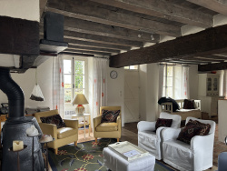 Cette maison, entièrement rénovée par les propriétaires actuels, allie confort et charme authentique. Elle est située sur un beau terrain, dans un cadre rural et paisible. On entre par une porte d'entrée d'origine pleine de caractère qui donne sur un espace de vie ouvert et spacieux. On remarque immédiatement le plafond avec poutres apparentes ainsi que l'association d'un parquet en bois massif et d'un sol en tomettes d'origine. L'espace de vie est divisé en un coin salon confortable avec un poêle à bois et une porte donnant sur la cour intérieure pleine de charme, ainsi qu'une cuisine ouverte avec une cuisinière à gaz indépendante avec four et d'un raccordement pour une machine à laver. Depuis la cuisine, on accède à une arrière cuisine où se trouve le chauffe-eau. À côté de la cuisine se trouve la salle à manger, d'où part l'escalier menant à l'étage. Depuis la salle à manger, on accède à un couloir comprenant des toilettes séparées, une salle d'eau avec lavabo, douche et système d'extraction, ainsi que deux chambres. La première chambre dispose d'une cheminée et d'une porte donnant sur l'avant de la maison. La deuxième chambre, accessible par une petite marche, dispose d'une salle d'eau privative avec lavabo, toilettes, une grande douche ouverte et un sol en tomettes d'origine, et donne sur le jardin arrière. En empruntant l'escalier depuis la salle à manger, vous accédez à l'étage supérieur, où se trouve une troisième chambre spacieuse et ouverte, dotée d'une salle de bains ouverte comprenant une baignoire, des toilettes et un lavabo. Cet espace peut être fermé en installant une cloison. À gauche de l'escalier se trouve une quatrième pièce, actuellement aménagée en salle de télévision et en bureau. Depuis le salon, vous accédez à la cour intérieure, qui offre une vue directe sur une grange authentique d'une beauté exceptionnelle datant de 1795. Cette grange est divisée en plusieurs espaces, dont des espaces de rangement pour les outils de jardin et le bois, un atelier et une grande pièce centrale. Attenant à la maison il y a un espace ouvert mais couvert qui sert de coin salon extérieur convivial avec un poêle à bois ; il y a également une petite dépendance supplémentaire. Sur le terrain, vous trouverez également un puits, une piscine, une mare avec une terrasse en bois et un verger avec divers arbres fruitiers. La maison est équipée de simples vitrages avec des contre-fenêtres et des volets en bois. La fibre optique est disponible dans la rue, mais n'est pas encore raccordée à la maison. Le chauffage est assuré par un poêle à bois et des radiateurs électriques dans le salon, ainsi que par des radiateurs électriques dans les autres pièces. La partie arrière du toit de la maison a été rénovée il y a environ quatre ans, tout en conservant les tuiles d'origine. Les toits de la maison et de la grange sont régulièrement contrôlés et sont en bon état. Avec un seul voisin, cette maison est située dans un environnement calme et verdoyant. Une magnifique maison rénovée où les détails authentiques ont été préservés avec soin. Le mobilier de la maison est disponible à la vente. Beddes est un petit village paisible, idéal pour ceux qui recherchent le calme et l'espace. À proximité (3 km) se trouve Châteaumeillant, où vous trouverez des magasins, des restaurants et toutes les commodités de base. La région se prête parfaitement à la randonnée et aux activités de plein air, avec de beaux paysages, un lac de barrage et des réserves naturelles dans les environs immédiats. Prix : 198.750EUR Ref : 102146 NoRSAC : 909 743 957 N'hésiter pas à nous contacter, langues parlées : Français , Anglais, Néerlandais et Allemand - Annonce rédigée et publiée par un Agent Mandataire -