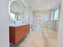 Les trois chambres dont une très belle suite parentale, permettent une vraie vie de famille, l'aménagement d'un bureau ou d'une chambre d'amis, selon les besoins. Là encore, tout est dans le détail, le choix des carrelages, des meubles de salle de bain, les peintures, les finitions, rien n'a été laissé au hasard. L'horizon, la vue panoramique devient presque un tableau au quotidien, et fait clairement partie intégrante de l'appartement.