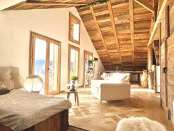 Sur les hauteurs de Passy, au 2e étage d'une petite copropriété, cet appartement d'une surface totale d'environ 160m2, a été rénové avec goût et modernité en 2024. Il est composé d'une lumineuse pièce de vie offrant une vue imprenable exposée sud et donnant sur une cuisine ouverte, de 3 chambres et 2 salles de bain. Un escalier donne accès au niveau supérieur, permettant l'aménagement de combles. En annexe une place de stationnement extérieur et la jouissance d'un vaste terrain commun à la résidence.