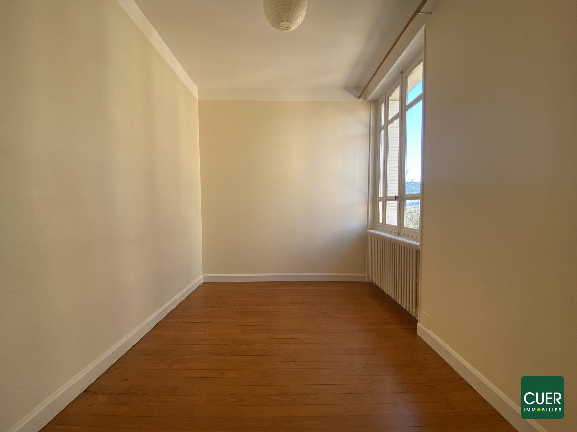 Charmant appartement de Type T3.En campagne dans le village du Grand Serre.Au 1er étage d'un petit immeuble, refait avec de beaux éléments.Un bien distribuant une cuisine meublée et ouverte sur un spacieux séjour avec un accès balcon, une salle d'eau d'une surface de 8 m² environ, le premier étage de ce logement vous offre un hall avec un coin bureau au calme et deux belles chambres.