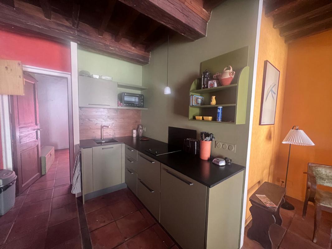 Avec ses plafonds à la française, il se compose d'un séjour très lumineux avec cheminée et son coin cuisine très bien équipé, d'une vaste chambre avec pierres apparentes et d'une salle d'eau avec douche à l'italienne, vasque en poterie d'Anduze et wc.