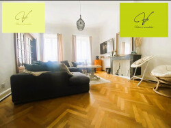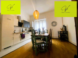 Votre agence Valérie's Immobilier vous propose en exclusivité, ce très bel appartement coup de coeur de 100m2, situé dans une petite copropriété de 3 appartements, rue de France à Sarreguemines. Cet appartement F3, vous séduira de par son charme haussmanien, offrant un beau parquet très bien entretenu dans chaque pièce. Il offre une belle luminosité, de beaux volumes et est des plus chaleureux. En effet dès son entrée celle-ci vous mènera au beau séjour de 24m2 avec cheminée décorative, deux chambres dont une de 22m2, une cuisine équipée, une belle salle de bains et toilettes séparés avec un espace buanderie. Une cave voutée haute de 50m2 vient compléter le tout, ainsi qu'une jolie cour extérieure en commun qui vous permettra de profiter au calme des belles journées et soirées. Vous serez séduits par son côté atypique et touche d'histoire car ce bâtiment fait partie de l'ancien château et offre dans les communs pour accéder à l'appartement un bel escalier qui était l'ancienne tour. N'hésitez pas à nous contacter pour toute visite ou information complémentaire