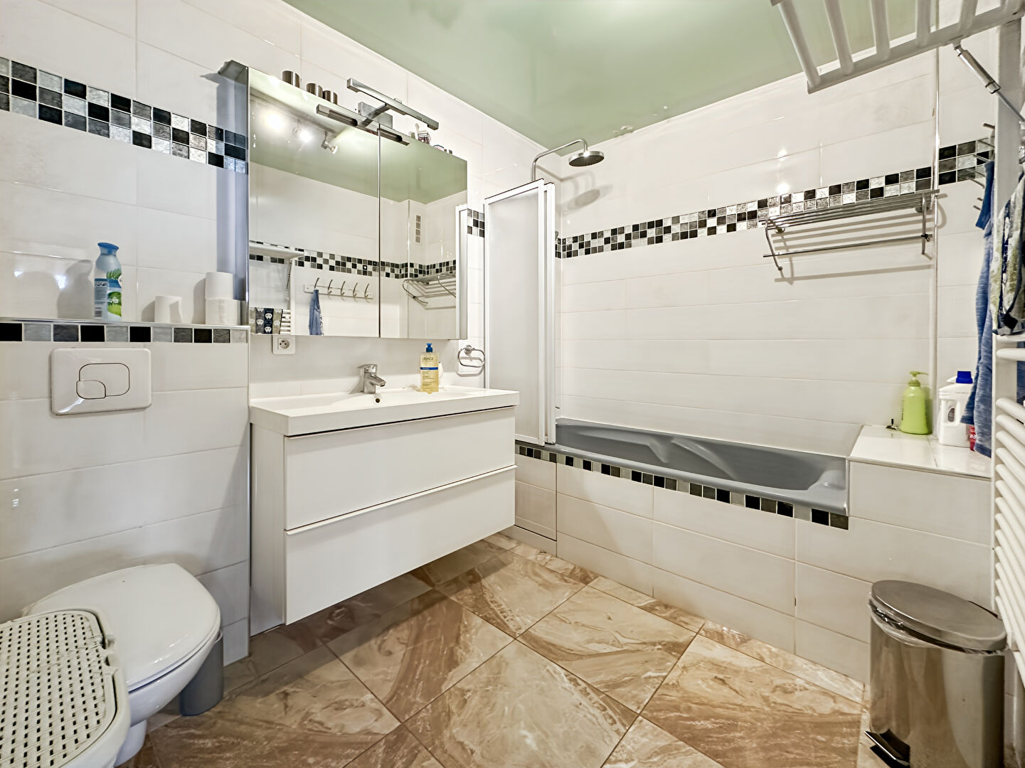 Une salle de bains, des WC séparés et des rangements bien pensés viennent compléter ce bien.