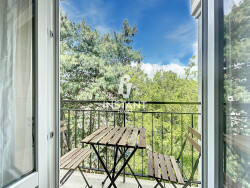 L'entrée mène à une cuisine séparée ainsi qu'à un séjour lumineux, doté de son propre balcon, idéal pour profiter d'un espace extérieur en toute intimité.