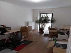 L' appartement est entièrement parqueté, offre une cuisine est ouverte vers le salon / salle à manger lumineuse, une salle de bain avec une baignoire et un lavabo meublé et un WC séparé.