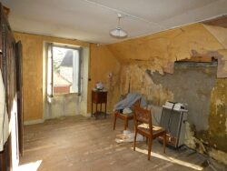 La deuxième maison juste en face a une surface habitable d'environ 47m², la toiture en ardoises est en bon état. On y trouve une pièce d'environ 21m² avec cheminée et un cellier d'environ 5m² sur l'arrière ; le premier étage a une grande chambre d'environ 21m² ; le grenier au-dessus pourrait être aménagé en une deuxième chambre. De chaque côté de la maison se trouvent une grange d'environ 50m² au sol avec une toiture à refaire, une autre écurie d'environ 30m² au sol; un ancien fournil; un jardin sur l'arrière avec des petites dépendances.