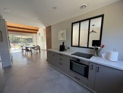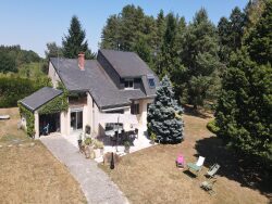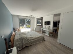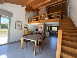 AU CALME MAISON D'ARCHITECTE EN PARFAIT ÉTAT comprenant : RDC : Entrée, salon/séjour cheminée/cuisine aménagée, chambre avec salle de douche et dressing, wc, cellier, buanderie 1er étage : Mezzanine, 3 chambres, salle de bains, wc, grenier. Garage, terrain de tennis, Piscine hors sol Terrain clos et arboré de 3 695 m² environ