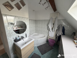 OUZOUER SUR LOIRE CENTRE - BELLE MAISON EN PARFAIT ÉTAT de 190 m2 env. comprenant: RDC : Entrée, salon / salle à manger avec cheminée, cuisine aménagée, chambre, bureau, wc. 1er étage : Palier, 3 chambres, salle de douche avec wc, salle de bains, bureau 2ième étage : Salle de jeux, chambre, wc Sous-sol : garage, atelier, buanderie, cave Abri de jardin Double vitrage PVC - Chauffage pompe à chaleur Terrain d'environ 1 550m2 (possibilité d'acquérir 1350m2 en plus)