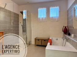 Côté extérieur : double garage / carport, portail électrique, cabanon en bois (local piscine), panneaux photovoltaïques avec revente d'électricité à EDF, assainissement individuel (fosse septique). Située dans un secteur calme, à proximité des écoles et commerces, avec un accès rapide à l'autoroute et un centre-ville accessible à pied. Un bien parfaitement adapté à une vie de famille ou à un investissement locatif rentable.