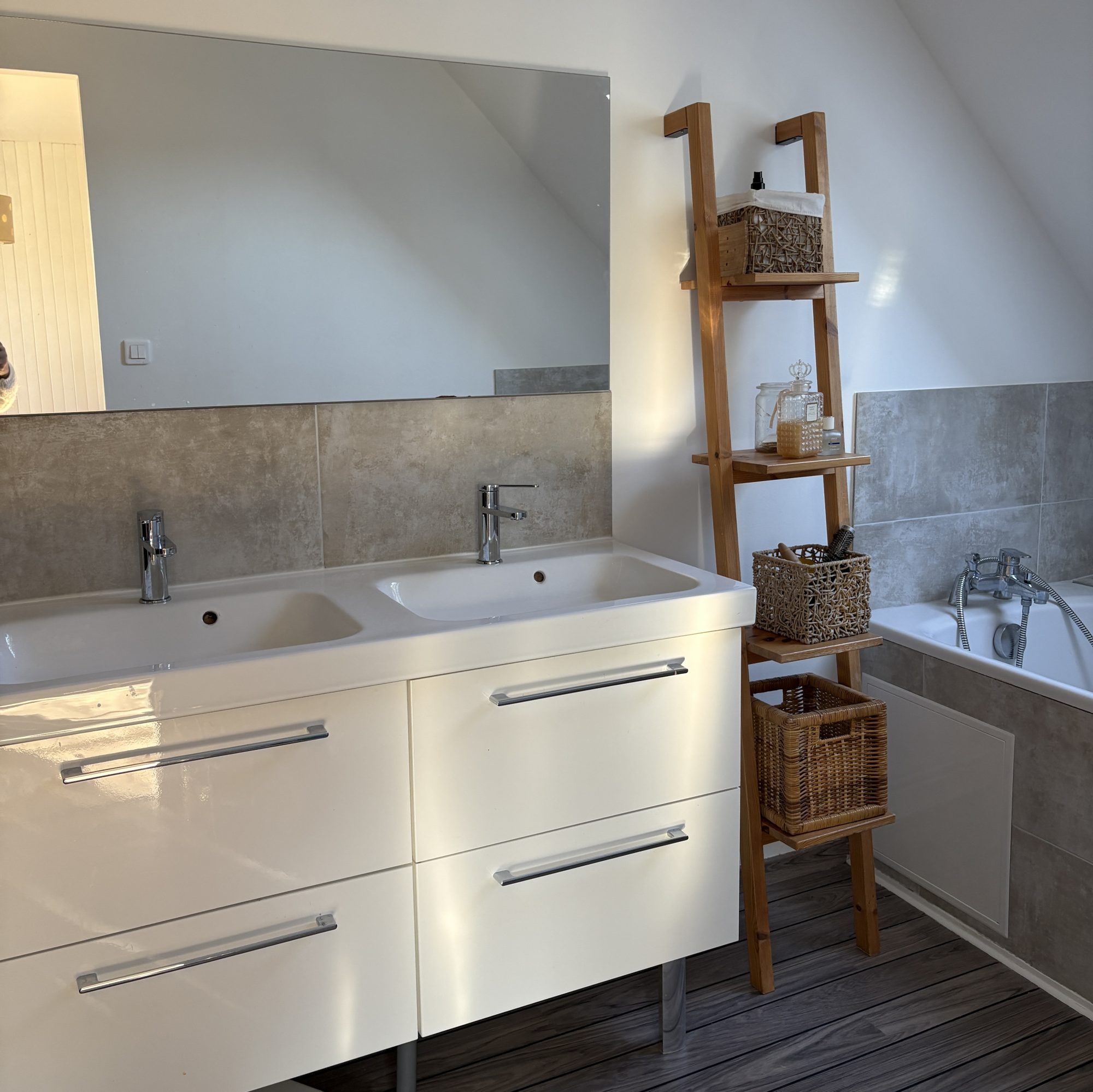 À l'étage, vous trouverez trois grandes chambres supplémentaires, une salle de bains, un wc et un espace bureau sur la mezzanine, idéal pour le télétravail.