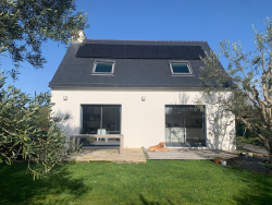 Dans un hameau à 3 km du bourg de MOËLAN et 5 km des plages, avec un accès rapide aux chemins de randonnée et de VTT, sise sur un terrain paysagé et arboré de 1165 m2, très agréable et lumineuse maison contemporaine de 5 pièces, construite en 2004, offrant : entrée sur une pièce à vivre de 50 m2 avec poêle à bois et partie cuisine ouverte aménagée, donnant accès sur deux terrasses en bois exotique et pierre, chambre (ou bureau) avec salle de douche privative, WC avec lave-mains. A l'étage : bel espace de vie en mezzanine, trois chambres sur parquet équipées de placards, salle de bains, WC séparé. En annexes : un garage de 29 m2 attenant à la maison avec partie buanderie, double carport avec partie abri de jardin et partie bûcher. La maison est parfaitement entretenue et équipée de panneaux solaires permettant d'importantes économies en matière de consommation électrique. Belle opportunité, nous consulter. CREFF IMMOBILIER15 Rue QUILIEN29360 CLOHARS CARNOET0298066346