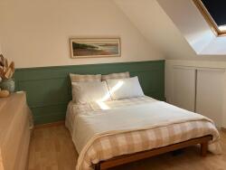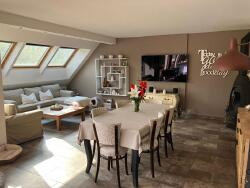 - au rez-de-chaussée : Lumineuse pièce à vivre répartie en salon/salle à manger, avec poêle à bois et cuisine ouverte équipée avec accès terrasse, dégagement avec placard, une chambre avec salle de douche, wc, buanderie et chaufferie.