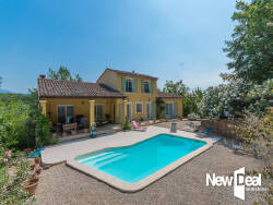 UNIQUE, En exclusivité, au Pays de Fayence, à Seillans, nous vous proposons cette belle maison d'architecte, lumineuse, offrant une vue panoramique dominante sur la verdure. La maison vous accueille dans son séjour cathédrale avec sa cheminée, ouvrant sur une très agréable terrasse ombragée et sa piscine en contrebas, une salle à manger conviviale et sa belle cuisine semi-ouverte donnant sur une seconde terrasse. 2 chambres et leur salle d'eau complètent le rez-de-chaussée. L'étage est dédié aux parents avec sa chambre, sa salle d'eau privative complète et son dressing (actuellement une bibliothèque), ainsi q'un espace bureau et ses grandes fenêtres surplombant le vallon. Un garage et un studio indépendant sont à votre disposition, ainsi que plusieurs places de parking. Le terrain de 5 000m² environ comprend une soixantaine d'oliviers et un terrain de pétanque. Les informations sur les risques auxquels ce bien est exposé sont disponibles sur le site Géorisques : georisques.gouv.fr