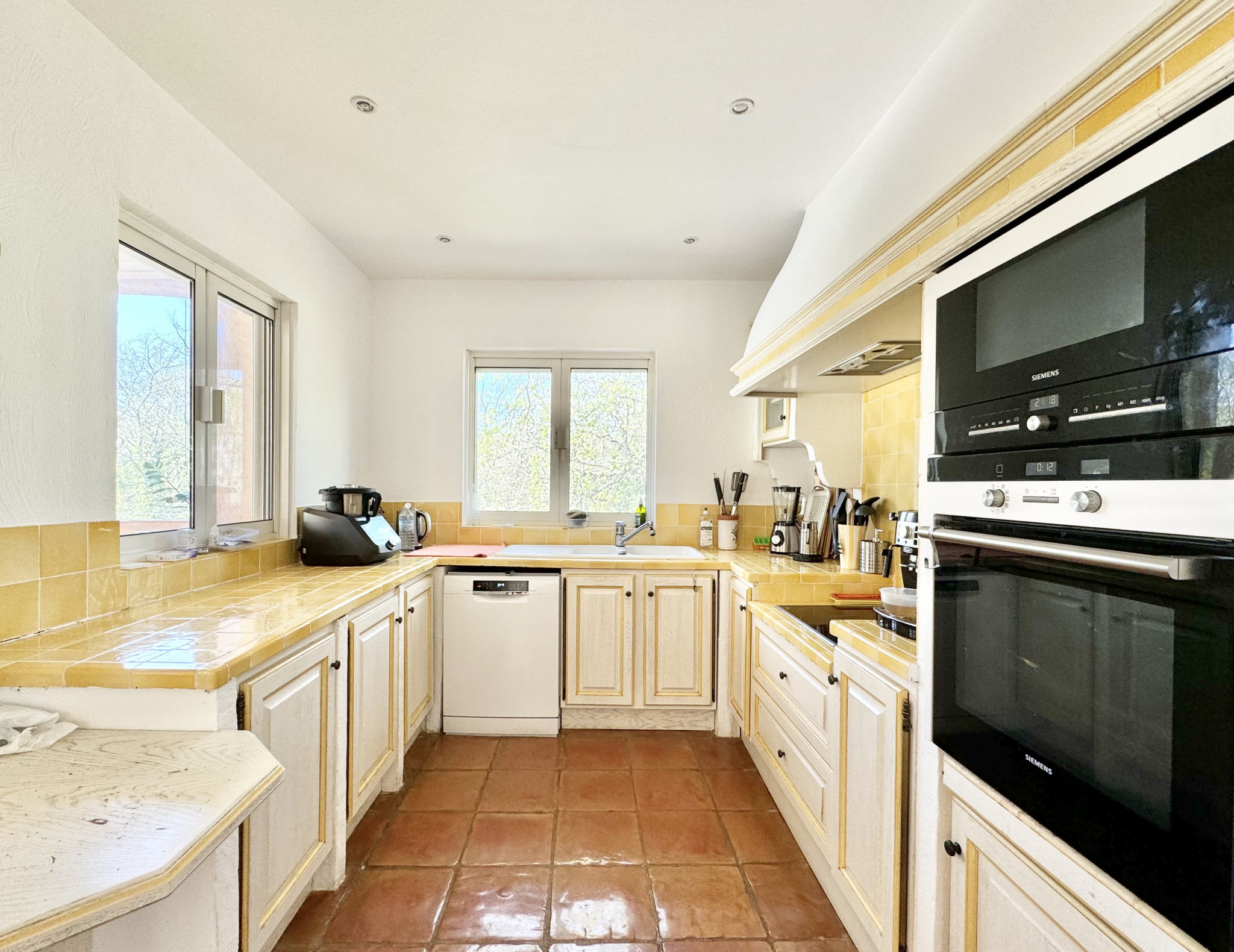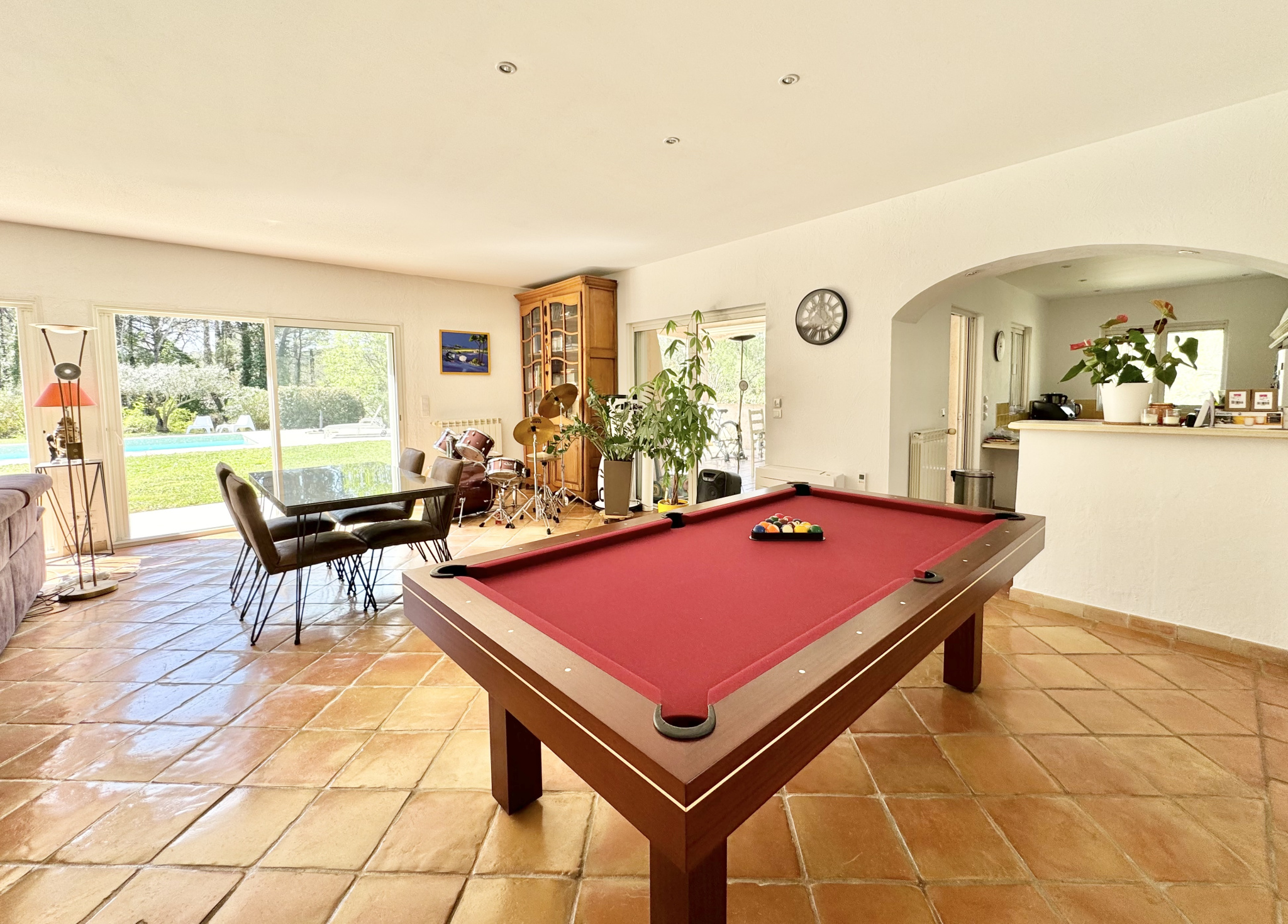 UNIQUE, En exclusivité, au Pays de Fayence, à Seillans, nous vous proposons cette belle maison d'architecte, lumineuse, offrant une vue panoramique dominante sur la verdure. La maison vous accueille dans son séjour cathédrale avec sa cheminée, ouvrant sur une très agréable terrasse ombragée et sa piscine en contrebas, une salle à manger conviviale et sa belle cuisine semi-ouverte donnant sur une seconde terrasse. 2 chambres et leur salle d'eau complètent le rez-de-chaussée. L'étage est dédié aux parents avec sa chambre, sa salle d'eau privative complète et son dressing (actuellement une bibliothèque), ainsi q'un espace bureau et ses grandes fenêtres surplombant le vallon. Un garage et un studio indépendant sont à votre disposition, ainsi que plusieurs places de parking. Le terrain de 5 000m² environ comprend une soixantaine d'oliviers et un terrain de pétanque. Terrain stable et maison saine (étude géotechnique G5 complète). Les informations sur les risques auxquels ce bien est exposé sont disponibles sur le site Géorisques : georisques.gouv.fr