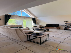 Au 1er étage : une grande pièce à vivre avec de grandes baies vitrées, avec un accès direct à la terrasse et au jardin. - Une cheminée. - Une grande cuisine équipée donnant accès également à la terrasse et au jardin. En demi niveau il y a une chambre spacieuse et une salle de bain équipée (douche et baignoire) et un WC séparé. Au deuxième étage : Une mezzanine, deux chambres dont une avec un balcon et un grand dressing. - Un grenier.