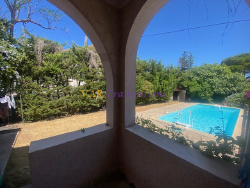 Villa individuelle de 215 m2 dont 109 m2 de plain pied, idéalement située, au coeur du village de Saint-Mandrier sur Mer, proches de toutes les commodités, du port et des rivages. Maison de charme d'après-guerre Jardin arboré de 937 m2 Piscine Fort potentiel Cette maison de caractère, construite dans l'après-guerre, séduit immédiatement par son authenticité, ses beaux volumes et sa hauteur sous plafond de 3 mètres, offrant une atmosphère chaleureuse et élégante. Elle propose trois grandes chambres de 13 m2, dont deux avec un accès direct à une terrasse privative, idéal pour profiter pleinement de l'extérieur en toute intimité. Le coeur de la maison s'articule autour d'un bel espace de vie de 35 m2 avec cheminée à bois, parfait pour des moments conviviaux. Vous disposerez également d'une cuisine séparée avec arrière-cuisine, ouverte sur une agréable terrasse avec pergola, exposée Est. Une salle de bains avec baignoire et des WC séparés complètent ce niveau. À l'extérieur, vous serez conquis par un magnifique terrain plat et arboré de 937 m2, agrémenté d'arbres centenaires, d'une piscine privative avec douche et WC extérieur, et offrant la possibilité de stationner plusieurs véhicules à l'intérieur de la propriété. Les prestations supplémentaires constituent un véritable atout : Cave -Grenier aménagé de 106 m2 avec plancher (hauteur au faîtage de 2,60 m) avec bureau, velux et WC indépendants - Nombreux espaces de rangement - Confort et équipements : chaudière au gaz de ville, forage, environnement calme et verdoyant. Un bien rare, alliant charme, volumes et qualité de vie, idéal pour une résidence principale ou secondaire dans un cadre privilégié.