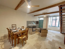 A vendre chez AGENCIMA! Chaleureuse et spacieuse maison de village située au coeur du centre historique. Elle offre de beaux volumes notamment un séjour avec cuisine américaine de 48m2 au rez-de-chaussée avec sol en travertin. Le premier étage est équipé d'une vaste chambre, d'une salle d'eau, d'un wc et d'une petite terrasse. Au deuxième étage, vous y trouverez une seconde grande chambre, salle d'eau et wc. Entièrement rénové et climatisé, ce bien possède énormement de cachet. Comment ne pas être séduit.... Ne tardez pas ! Pour visiter ce bien, contactez votre agence AGENCIMA.*Honoraires à la charge du vendeur.