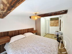 À l'étage supérieur, deux chambres lumineuses vous attendent, chacune offrant une ambiance unique sous les toits en pente, bénéficiant d'une hauteur confortable, ne pénalisant pas l'utilisation de l'espace ; toutes deux sont équipées de la climatisation réversible.