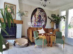 EXCLUSIVITÉ. Belle maison de ville en position dominante, sans vis-à-vis, sur un terrain clos de 5 000 m² Située en hauteur, cette charmante maison bénéficie d'un environnement calme et d'une vue dégagée, sans aucun vis-à-vis. Le terrain de 5 000 m², entièrement clôturé, est accessible par un portail électrique avec visiophone. La propriété est également équipée d'un système d'alarme ainsi que de volets roulants électriques, commandés à distance pour chaque fenêtre. Vous profiterez d'une piscine en position dominante offrant une vue dégagée, ainsi que d'un magnifique jardin arboré et très fleuri, agrémenté d'arbres fruitiers et d'un coin potager. Un garage indépendant spacieux complète l'ensemble. Construite en 1974 en pierre et moellons, la maison offre de beaux volumes : -Un grand salon de 38 m² avec cheminée à insert bois, ouvrant sur un balcon avec vue dégagée -Une cuisine entièrement rénovée et équipée (plaque à induction, hotte neuve, réfrigérateur américain), avec accès direct à une terrasse couvert type pergola, comprenant un coin barbecue. -Trois chambres -Une salle d'eau En rez-de-chaussée : -Une grande pièce de 45 m² -Une chambre supplémentaire -Une vaste buanderie pouvant être aménagée selon vos besoins. Maison équipée de double vitrage sur l'ensemble des ouvertures et raccordée au tout-à-l'égout (installation conforme). Contactez-moi 07 61 65 06 31