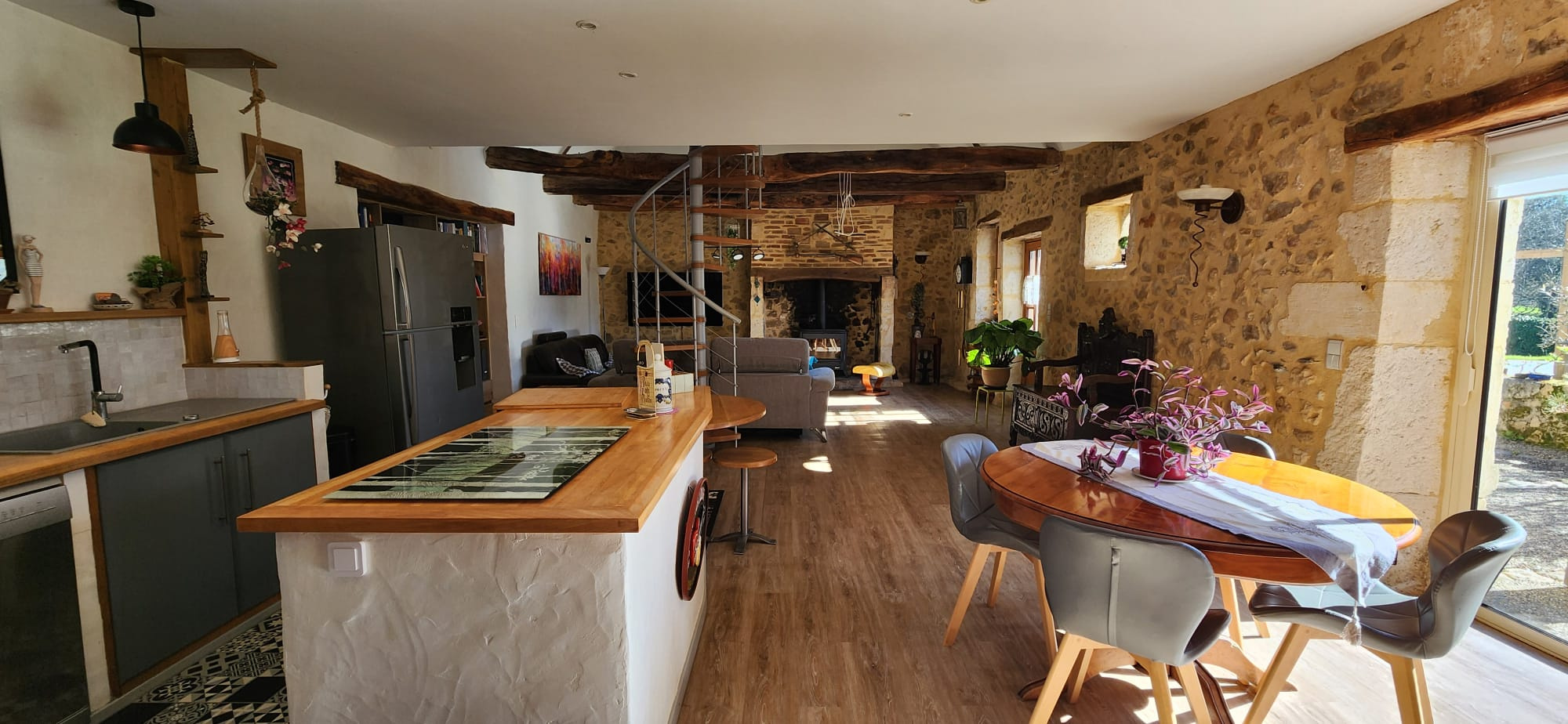 La maison, d'une superficie habitable de 187m², bénéficie de beaucoup de charme et d'authenticité : pierre et charpente apparentes, grandes cheminées, Cette belle maison en pierre a été entièrement rénovée entre 2013 et 2023 : isolation, électricité, escalier, menuiseries, climatisation réversibles, cuisine,