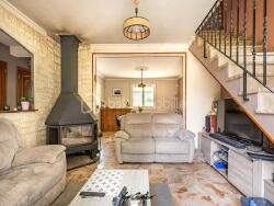 Elle se compose d'une entrée semi ouverte sur la pièce à vivre, d'un salon/salle à manger de 30 m2. Ce dernier bénéficie d'un poêle à bois de 2020 qui réchauffera vos soirées d'hiver.