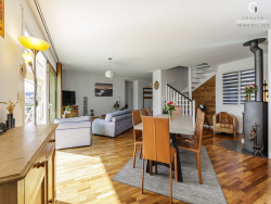 Édifiée en 2002 sur une parcelle d'environ 1000 m2, la maison offre dès l'entrée une atmosphère chaleureuse et lumineuse. Vous découvrirez une agréable pièce de vie de 48m2 avec cuisine ouverte, baignée de lumière et propice aux moments de convivialité agrémentée de son poêle à bois. Le rez-de-chaussée accueille également une suite parentale confortable avec salle de bain et espace dressing, ainsi qu'une seconde chambre disposant de son point d'eau. Un passage couvert permet d'accéder directement au garage de 27m2, apportant un véritable confort au quotidien. À l'étage, un espace mezzanine chaleureux dessert une salle d'eau et deux chambres supplémentaires, parfaites pour accueillir famille et invités. À l'extérieur, le jardin paysager invite à la détente avec une spacieuse terrasse d'environ 120 m2, véritable extension des pièces à vivre, et une piscine creusée, idéales pour profiter pleinement des beaux jours tout en admirant la vue dégagée sur les reliefs environnants. Un bien rare offrant calme, confort et qualité de vie, à seulement quelques minutes des commodités et d'Annecy. Pour plus de renseignement : Pauline 06.14.52.85.29 ou Anne 07.58.63.23.12.