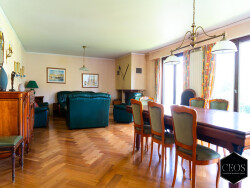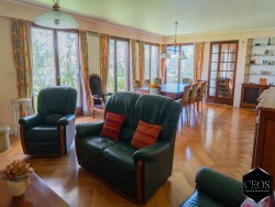 - au rez-de-chaussée : un hall d'entrée avec placards desservant un double séjour d'environ 45 m2 ouvert sur le jardin, une grande cuisine indépendante aménagée et équipée de plus de 19m2, un deuxième salon ou bureau d'environ 14m2 avec ouverture possible sur le double séjour et des WC indépendants.