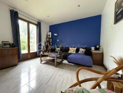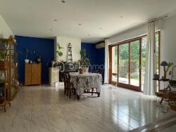 Dès l'entrée, les volumes et la luminosité séduisent. Une vaste entrée vous mène à une pièce de vie chaleureuse de 40 m², baignée de lumière grâce à une grande baie vitrée qui ouvre sur la nature environnante. Une cheminée vient parfaire l'ambiance.