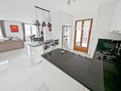 Maison composée comme suit: vaste séjour de plus de 44m2 avec cuisine équipée avec fabuleux plans de travail en granit, triple exposition : est, sud et ouest, luminosité garantie toute la journée! WC séparés.