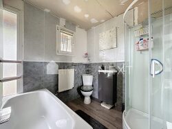 À l'extérieur, la parcelle offre une très grande terrasse et un jardin soigneusement entretenu et clôturé, agrémenté d'arbres fruitiers (pommier, mirabellier).