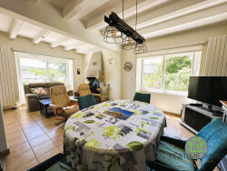 Sur un très beau terrain constructible , elle présente 5 pièces, dont 4 chambres (2 au rez-de-chaussée), un salon/séjour lumineux avec poêle à bois, une cuisine aménagée ouverte, 2 salles d'eau, 2 toilettes, une buanderie, un grenier, et un garage atelier en sous sol. Vous apprécierez également la terrasse et la véranda sur le jardin.