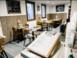 Une salle principale de 24 places assises avec un bar et un comptoir (permettant de servir en moyenne 30 à 35 couverts en hiver).