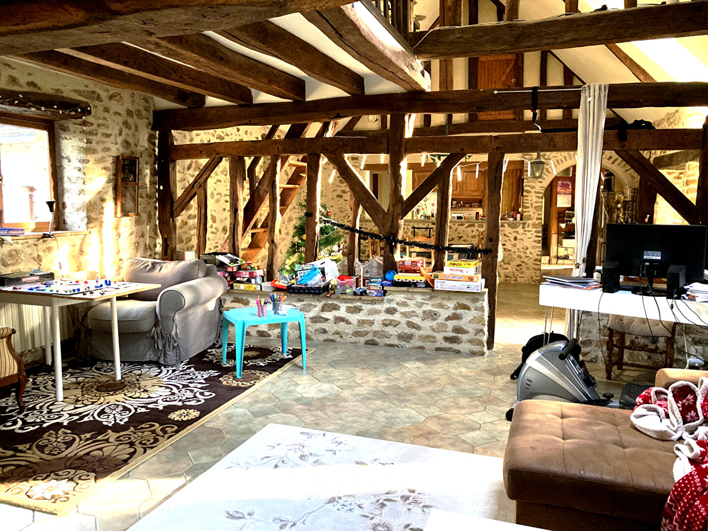 À l'intérieur, elle propose 5 chambres, une grande pièce de vie, une cuisine séparée équipée, une salle d'eau, une salle de bain, et deux toilettes et bien plus encore. La grange /garage offre un espace supplémentaire à exploiter.