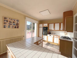 A VENDRE, SAINT-BRIEUC CESSON, entre bourg et plage, belle propriété de 188 m² habitables, sur 2 904 m² de terrain arboré avec vue dégagée sur vallée, comprenant en rez-de-jardin: deux garages, wc, buanderie, cellier, cave, atelier et chaufferie / buanderie, au premier niveau : entrée, cuisine dînatoire aménagée et équipée (20m2), pièce de vie (53m²) sur parquet avec cheminée ouvrant sur grande terrasse au sud, chambre avec placards, salle de bains avec douche et wc. Au dessus : mezzanine, bureau, trois chambres, salle d'eau et wc, chauffage par pompe à chaleur, puit, ENSOLEILLÉE, BEAUX VOLUMES, BELLES PRESTATIONS, CACHET. (3.99 % honoraires TTC à la charge de l'acquéreur.)