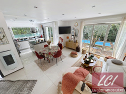 Situation idéale en centre ville et au calme pour cette maison récente très lumineuse et chaleureuse, profitant à la fois de toutes les commodités à pied (tout commerces, gare, bus, pistes cyclables, ports...) et d'un beau cadre verdoyant ! L'entrée (avec placards et wc) dessert la pièce principale aux larges ouvertures sur la verdure, une chambre (avec placard) et un garage partiellement aménagé de 22m2 (isolé, carrelé, arrivées d'eau et évacuation pour y installer une 2ème salle de bains, placard). A l'étage : une chambre avec accès à une terrasse-solarium, et une salle d'eau avec wc. Surface utile de 89m2, surface Carrez de 66,80m2. La climatisation réversible vous apportera un confort thermique toute l'année... A l'extérieur : un espace intime très agréable avec terrasse, pergola, piscine de 2m/5m, et cour pour stationnement. Venez la visiter et laissez-vous séduire par cette maison originale et chaleureuse très agréable. Honoraires inclus à charge acquéreur 4,87 %. Classe énergie : B. Contact : Agence L.C.I. LA CÔTE IMMOBILIERE, Tél : 0661108516.