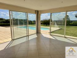 Propriété de charme avec piscine, grand terrain et prestations haut de gamme Dans un environnement calme et préservé, à l'abri de tout regard, découvrez cette belle maison construite en 2004, offrant de généreux volumes et des prestations de qualité. D'une surface habitable d'environ 257 m2, cette propriété séduit par sa luminosité, ses espaces ouverts et son confort de vie avec sa cuisine entièrement équipée, sa pièce de vie spacieuse possédant de grandes ouvertures donnant accès à une grande terrasse exposée Ouest, tout comme la véranda, ce qui est idéal pour profiter des extérieurs en toute saison. Nous avons également 4 chambres dont une suite parentale avec sa salle de bain et son dressing, ainsi que des espaces fonctionnels parfaitement pensés pour une vie de famille. En complément, un sous-sol total de 210 m2, comprenant notamment un grand double garage, atelier, cave et nombreux espaces de rangement. La maison bénéficie d'équipements performants :