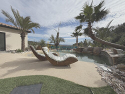 Belle villa récente de 135 m2 environ 3 chambres dont une suite parentale avec bain et dressing et studio à finir d'aménager de 20 m2 environ . Large séjour cuisine de 52 m2 environ avec cuisine équipée et aménagée . Grand garage double de 51 m2 environ carrelé et isolé . Parcelle de 787 m2 avec jardin paysagé et piscine naturelle superbe vue dégagée.