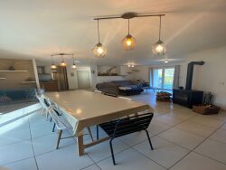Découvrez cette magnifique villa de 124 m², construite en 2008, nichée dans un cadre idyllique offrant une vue imprenable sur la campagne environnante. Cette propriété plain-pied, en excellent état, est un véritable havre de paix pour ceux qui recherchent un équilibre parfait entre confort moderne et sérénité naturelle.