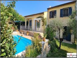 A Villeneuve, dans les Alpes de Haute Provence, je vous propose cette villa de 2004 qui offre une alliance parfaite entre volumes, piscine et nature. Vivez l'espace et profitez du confort, le tout dans un environnement calme, verdoyant mais proche des commodités ? la campagne sans l'isolement ! La maison de 150 m² environ propose en rez-de-jardin, deux chambres lumineuses ouvrant directement sur l'extérieur qui permettent de profiter pleinement du jardin, de ses oliviers et de la piscine généreuse de 9 x 4,30 m . Cet espace est idéal pour recevoir, dans un cadre ensoleillé typique de notre belle région. Vous trouverez également une salle d'eau indépendante ainsi que des toilettes, pour un confort optimal. Au 1er niveau, un hall d'entrée qui dessert une cuisine équipée et fonctionnelle, idéale pour préparer vos repas en famille ou entre amis. Le grand salon lumineux et la salle à manger s'ouvrent sur la terrasse offrant une vue agréable sur la piscine, sa plage, sur la cuisine d'été et en toile de fond notre charmant village perché. A l'étage, deux chambres avec une grande salle d'eau et un dressing. A l'extérieur, sur 1000 m², différents espaces invitent à la détente et à la convivialité. Une pergola permet de profiter des belles journées d'été à l'abri du soleil. Une petite serre vous permettra de cultiver fleurs ou légumes selon vos envies. A l'arrière de la propriété, la cour et l'abri voiture spacieux , permettent une bonne capacité de parking. Sans oublier pour les amateurs une grande cave enterrée. A découvrir