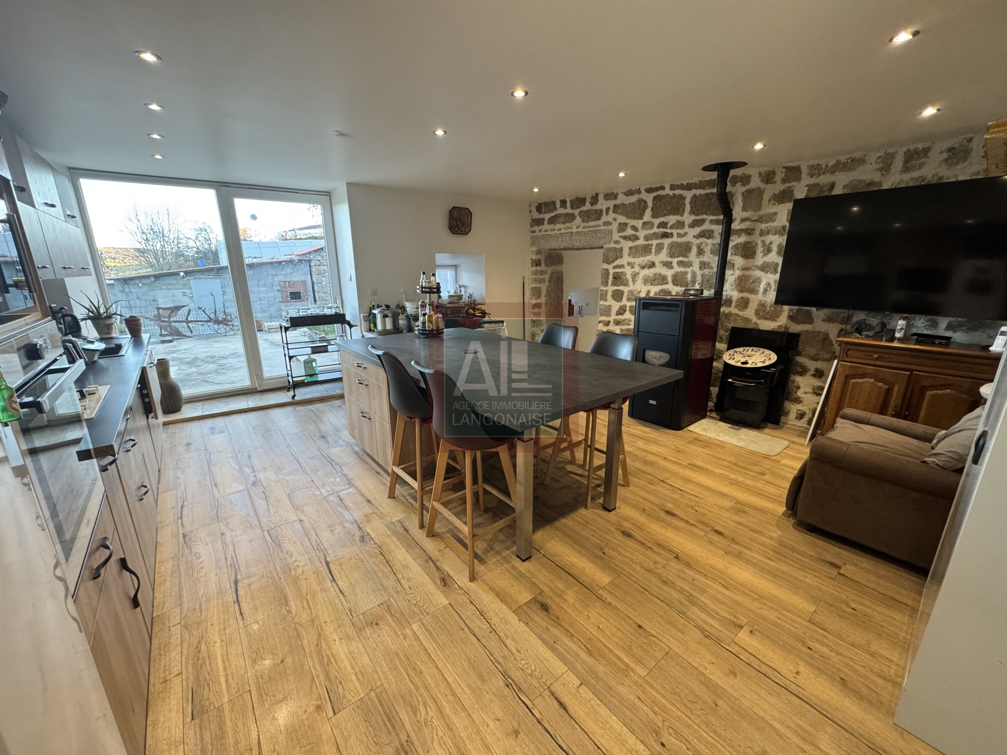 Après avoir passé la jolie terrasse, vous rentrez dans un salon de 90 m2, 3 cuisines et une cave voutée semi enterrée de 27 m2, idéal pour une grande famille ou pour un projet de reconversion professionnel.