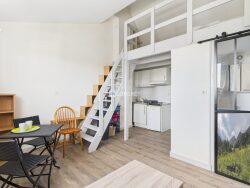 Ce cocon douillet à 1 km de la plage, dispose d'un séjour avec coin cuisine, une salle d'eau et d'un chambre en mezzanine. Stationnement privatif couvert.