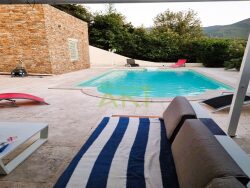 Située en pleine nature, sans aucun vis-à-vis ni voisinage, cette superbe maison type 4, entièrement rénovée dans l'esprit authentique d'une bergerie en pierre, séduira les amoureux de calme et d'espaces. Édifiée sur un terrain de 2000 m2, avec la possibilité d'acquérir davantage de surface, cette propriété unique offre un cadre de vie paisible et préservé, tout en bénéficiant de prestations haut de gamme. La maison se compose d'une belle pièce de vie lumineuse, de trois chambres, d'une salle d'eau moderne, d'un cellier et d'un WC indépendant. L'ensemble de l'intérieur est habillé d'un grand carrelage design, conférant un style contemporain et élégant. Le confort est assuré en toutes saisons grâce à une climatisation réversible installée dans chaque pièce. À l'extérieur, vous profiterez d'une piscine entourée de travertin, idéale pour se détendre en toute tranquillité. Une extension jusqu'à 30 % de la surface existante est possible, vous permettant d'adapter ce bien rare à vos besoins ou projets futurs. Un bien exceptionnel, alliant charme de l'ancien, prestations modernes et cadre de vie rare.