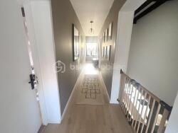 Dès l'entrée, un couloir donne le ton : luminosité, espace et harmonie. Il distribue au fond des toilettes, à gauche la cuisine et à droite le séjour.