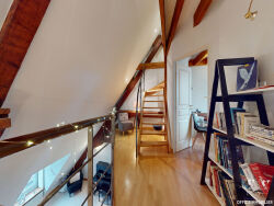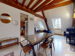 Votre agence OFFICE IMMOBILIER vous propose en EXCLUSIVITE à BESANCON - BOUCLE ce grand appartement situé au deuxième et dernier étage avec ascenseur d'un bel immeuble en pierre répertorié monument historique. Cet appartement traversant et singulier, propose au calme, et en plein centre ville de Besançon, de belles prestations et une configuration rare ! Datant du XVIème, ce bien d'environ 170 m² au sol sur trois étages a été totalement réhabilité avec goût. Une fois le pas de porte passé, on découvre la grande salle à manger ouverte sur le salon et la cuisine de 16m² équipée haut de gamme avec hotte à extraction extérieure. Les volumes sont imposants et la lumière omniprésente. Les nombreuses poutres en chêne qui ornent le plafond et structurent cette grand pièce de vie diffusent une atmosphère chaleureuse. Et puis, vient l'espace salon, quel spectacle ! C'est en levant les yeux que l'effet waouh prend tout son sens : à la façon d'un plafond cathédral, c'est toute la structure savante de la charpente qui s'offre au regard, ajoutant une dimension visuelle et esthétique distinctive à ce beau volume. On retrouve sur ce niveau une suite parentale de 25m² (chambre, SDB, dressing). C'est par un élégant escalier que l'on accède aux étages, 2 chambres avec chacune leur SDE et WC (17 et 19m²), un bureau (ou chambre) de 20m² au sol (poss. SDB), ainsi que de nombreux rangements, placards dans toutes les chambres. Cet appartement hors normes avec vues bien dégagées est très lumineux, possède de beaux volumes. Il est aussi très fonctionnel avec ses innombrables rangements. Les sols sont en pierre et en parquet chêne. Deux grandes caves voûtées parachèvent ce bien d'exception. Enfin, deux nouvelles chaudières à condensation promettent de bonnes performances énergétiques ( DPE C ). Et pour finir, n'oublions pas l'accès sécurisé avec VIGIK et alarme. Vous êtes séduits ? Alors contactez, sans tarder, votre agence Office Immobilier afin d'échanger avec le conseiller en charge de ce dossier et de programmer une visite de ce bien exceptionnel qui vous permettra véritablement de mesurer et d'apprécier tout son potentiel !